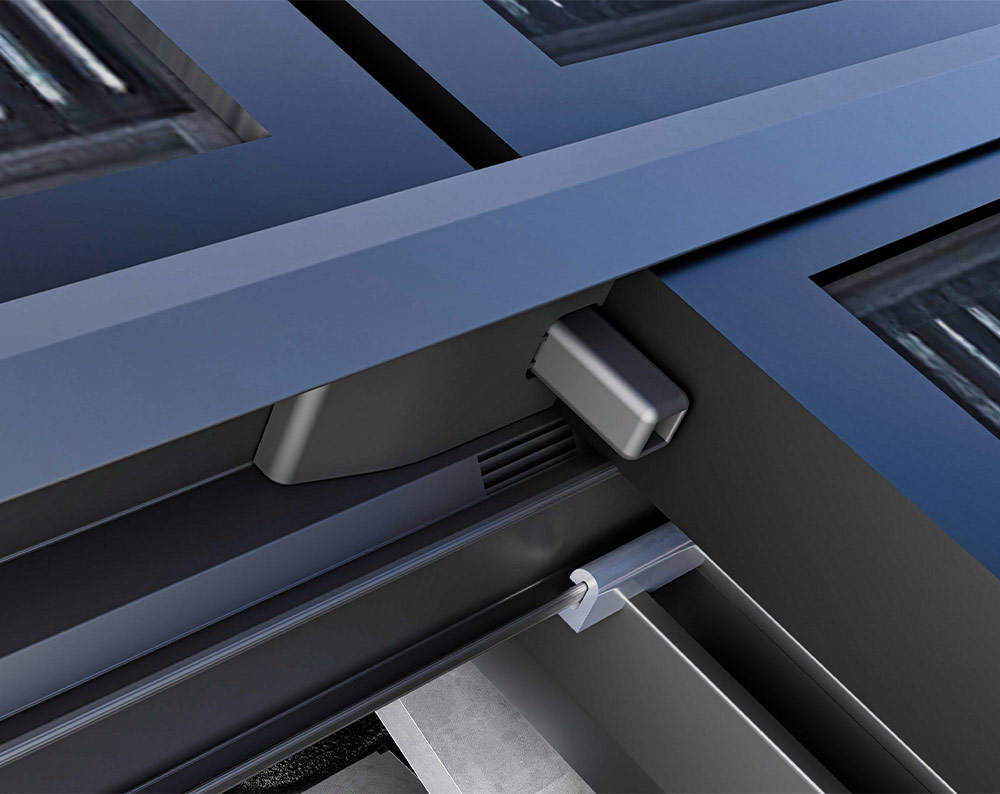L'entretoise LayTec de HSI assure un positionnement sûr des profilés insérés et maintient automatiquement la distance minimale de 10 mm entre deux cadres de modules, nécessaire en raison de la dilatation thermique. Il se fixe simplement derrière un module après son insertion dans le rail supérieur. Le système d'insertion LayTec ne doit être aligné qu'une seule fois et tous les modules solaires peuvent ensuite être insérés les uns après les autres. Cela permet d'économiser un temps et des efforts précieux.