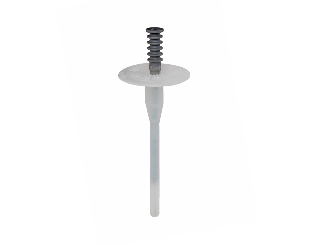La cheville se compose d'un corps en plastique robuste, d'un clou en acier galvanisé et d'une tête en plastique pressée. La tête réduit les ponts thermiques et offre une protection supplémentaire contre la corrosion. Le montage est simple et efficace, selon le principe d'une cheville à clou classique.