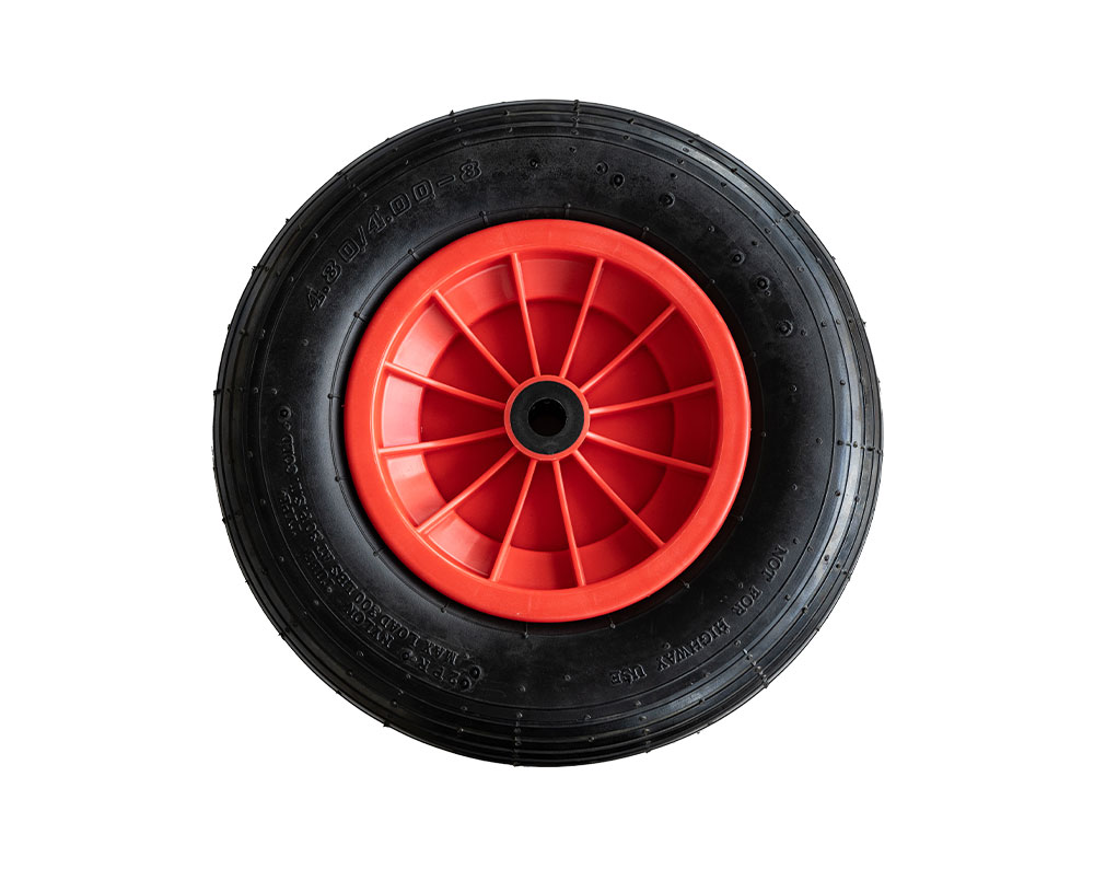 La roue pneumatique avec jante en plastique convient, selon la taille, parfaitement comme roue de rechange pour différents véhicules de transport. Le gonflage à l’air lui confère des propriétés amortissantes. Grâce à son profil à crampons, la bande de roulement assure une bonne adhérence sur les surfaces difficiles.