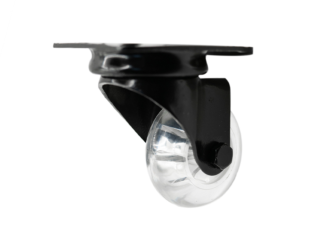 Roulettes pivotantes transparentes avec platine, noires
